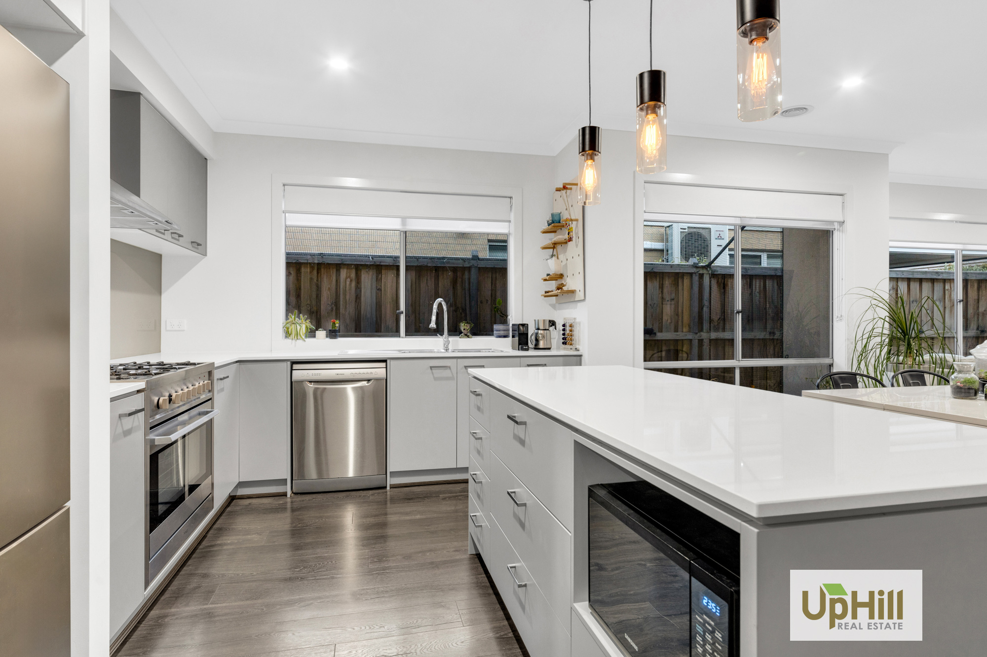 The stylish kitchen has everything you need to impress your guests, featuring stainless steel appliances, stone benchtops and ample storage flowing from the kitchen into the walk-in pantry which is sure to impress your guests.