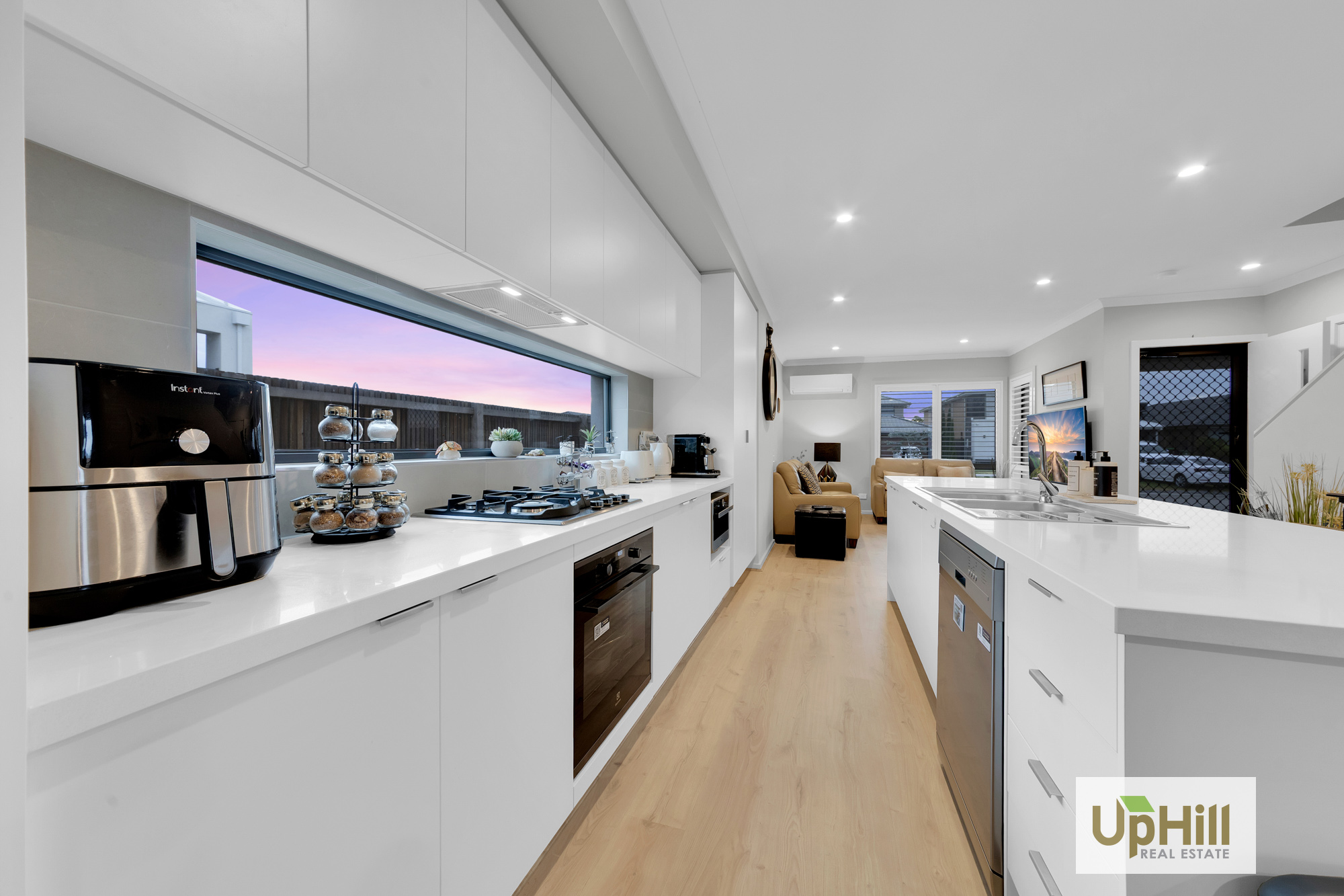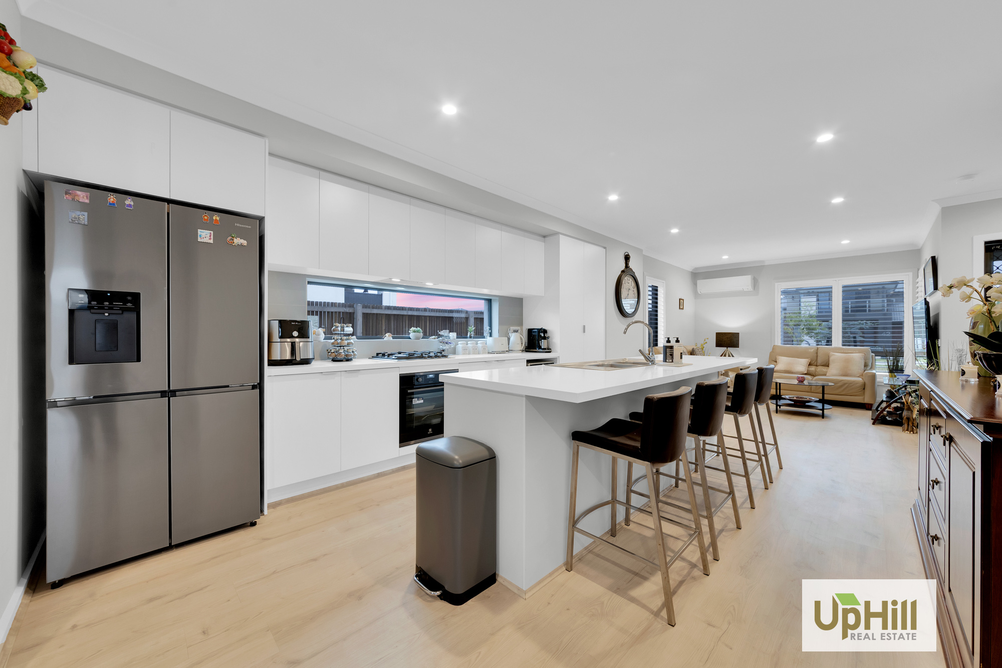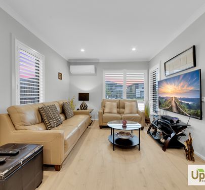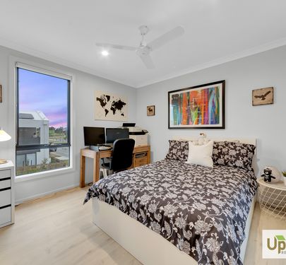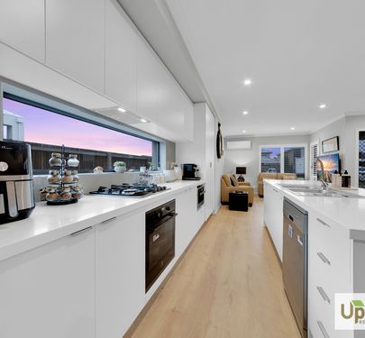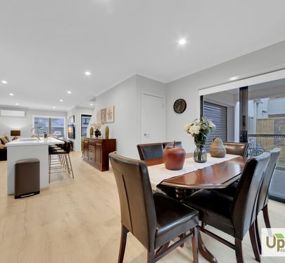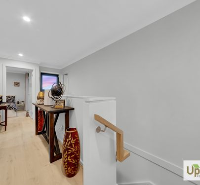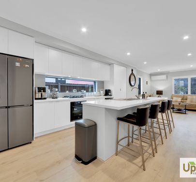 Upon entry, the home is thoughtfully split across two levels and as you enter the property expands into the heart of the property with quality finishes feature throughout and access to the 2-car garage and spacious laundry with dual access and conjoining powder room. The kitchen includes a stainless-steel oven and stovetop, ample storage, a built-in pantry, and a large island bench perfectly positioned to overlook the adjoining entertaining and living spaces.