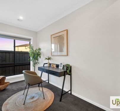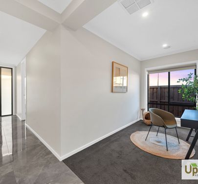 Upon entry, a private master suite awaits, offering a walk-in wardrobe and an ensuite featuring a double vanity. The master is positioned perfectly neighbouring study/formal living providing an exclusive retreat for homeowners. The thoughtful layout includes a spacious laundry with dual access and convenient dual access to the garage before leading into the heart of the home.