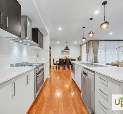 The heart of the home overlooks the open plan living and dining area with dual access to the undercover alfresco deck with retractable blinds for year-round use and is perfect to tailor to your needs with views across the low maintenance backyard perfect for the kids or pets to enjoy, creating an ideal place to enjoy as a family!