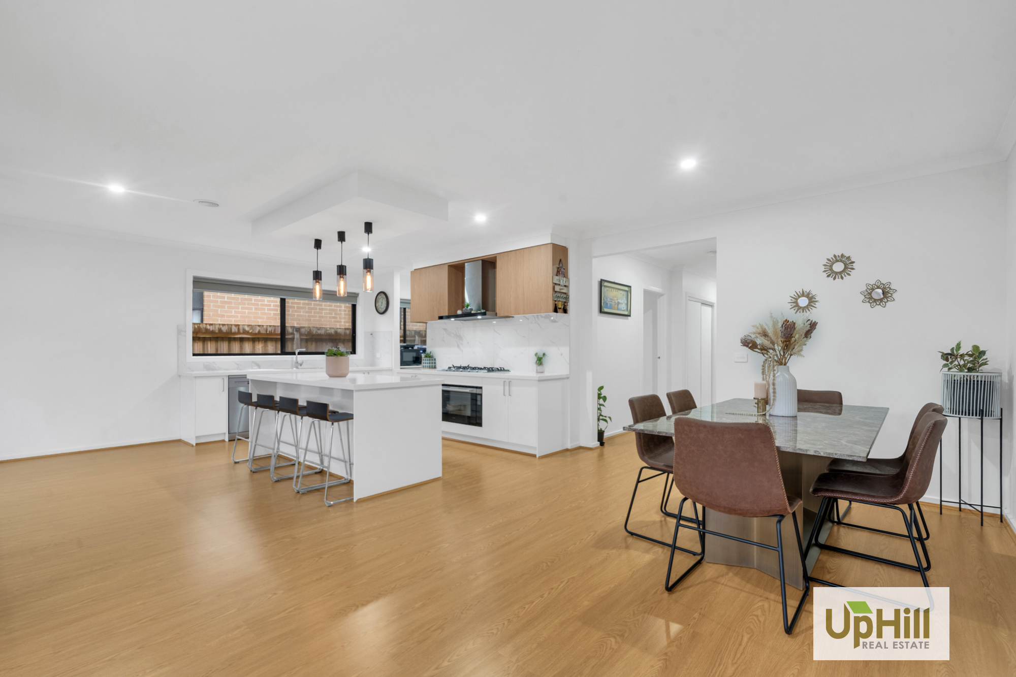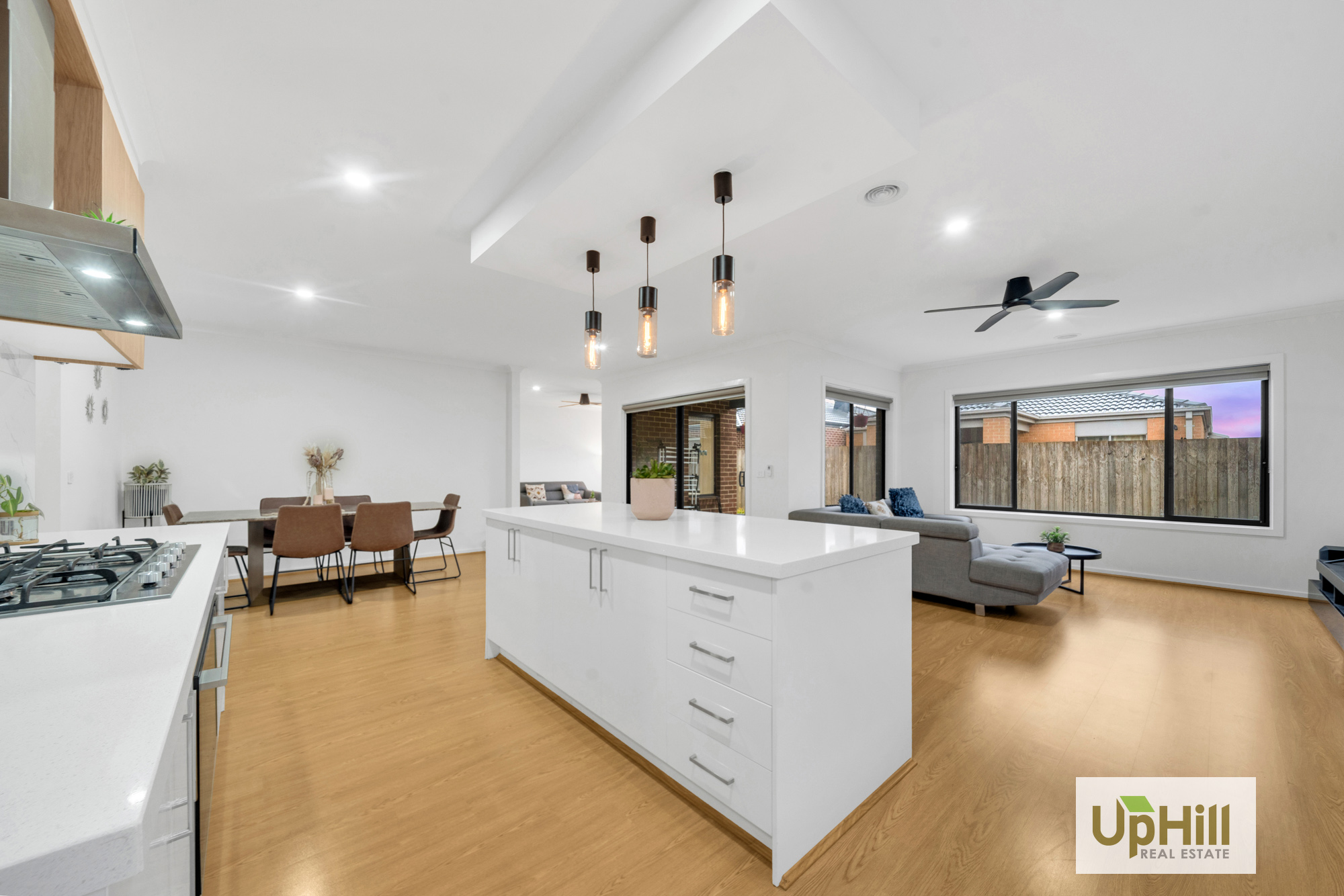The expansive open plan living and dining area, complemented by an additional formal living space or guest bedroom, offers versatility to suit your lifestyle. Dual access to the undercover alfresco area invites indoor-outdoor living, with views across the low-maintenance backyard, perfect for children or pets to play.