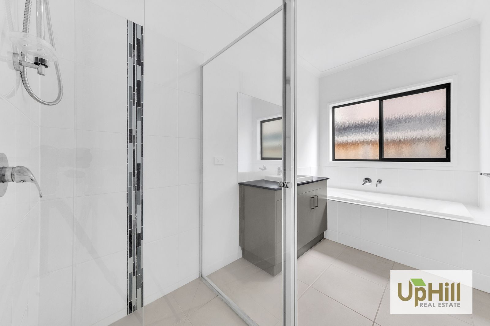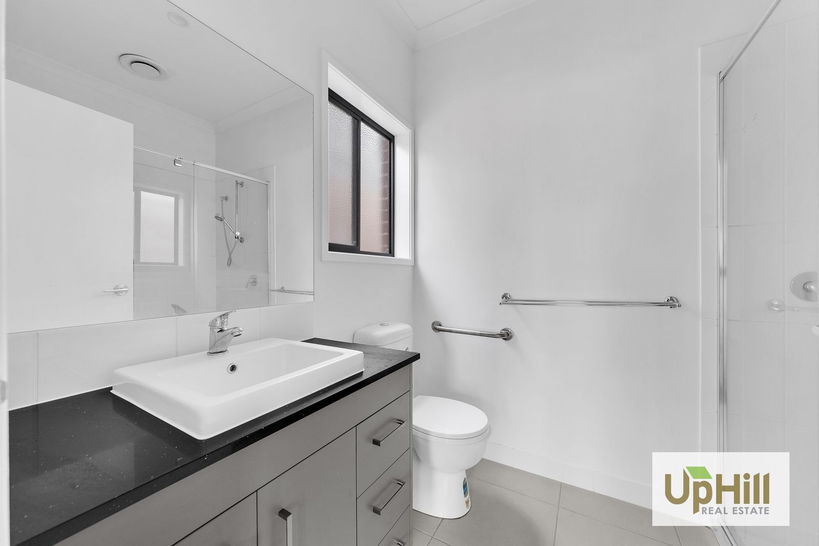 • Central bathroom appointed with modern fixtures and elegant finishes.