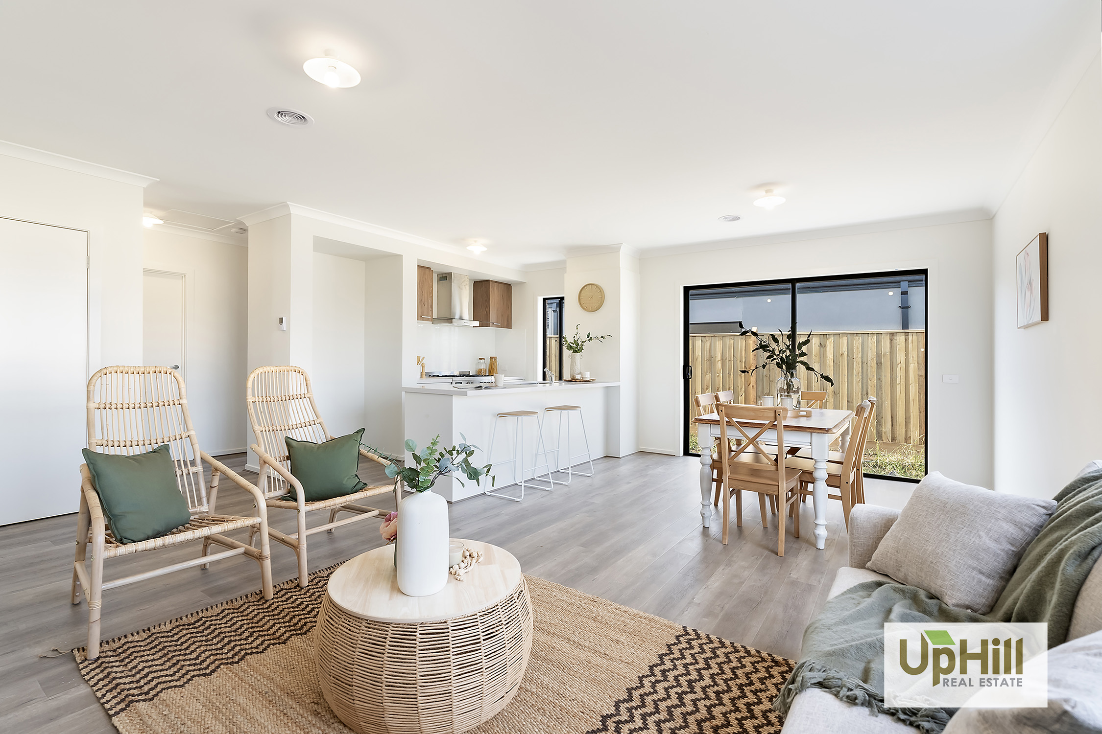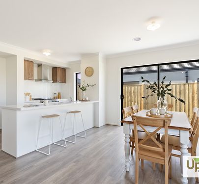 The property continues to the heart of the home and features the kitchen with stone benchtops throughout including the breakfast bar and stainless-steel appliances. The open plan living, and meals is positioned around the heart of the home and includes a hidden European laundry and sliding door access to the low maintenance backyard with the option to tailor to your family’s needs.