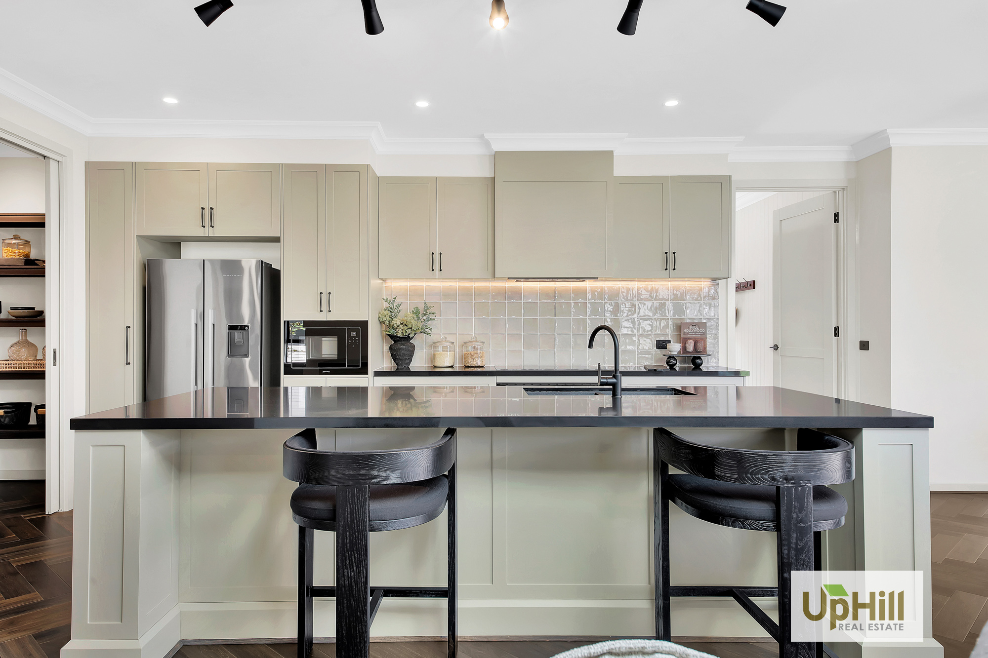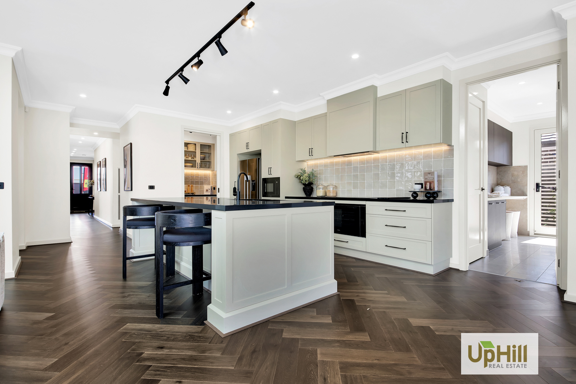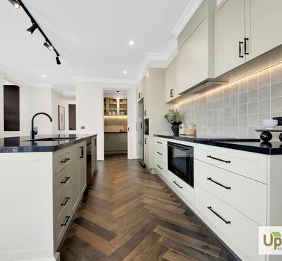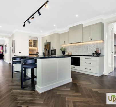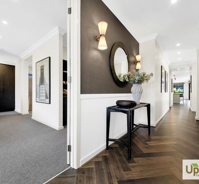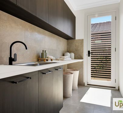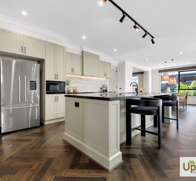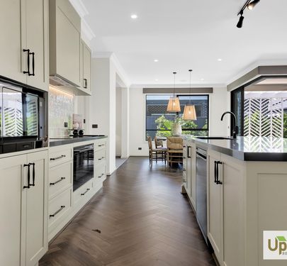 The beautifully designed kitchen has everything you need to whip up a hearty family meal or entertain and features a expansive island bench with stone benchtops which is sure to impress as well as stainless-steel appliances, and ample storage throughout including the spacious walk-in butler’s pantry as well as neighbouring laundry with dual access and additional linen closet are positioned perfectly to creating additional storage throughout.