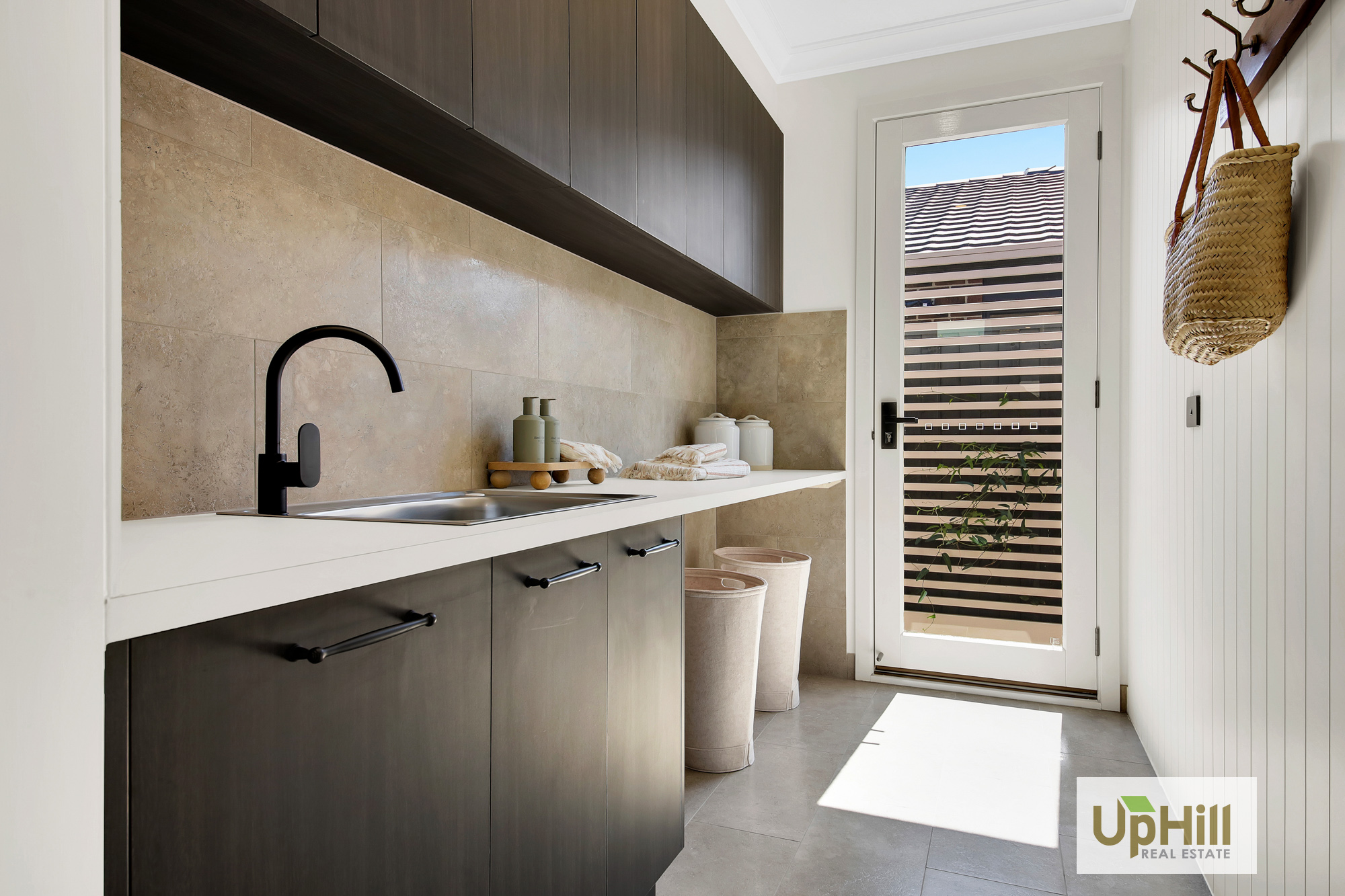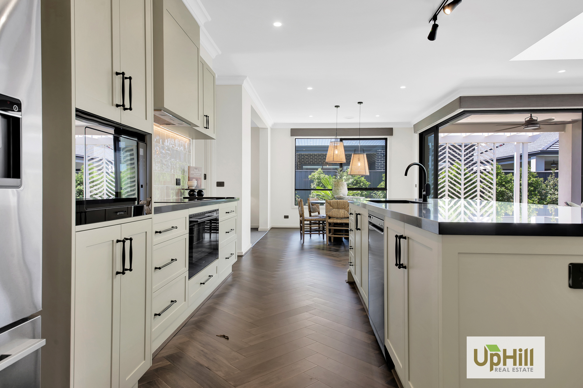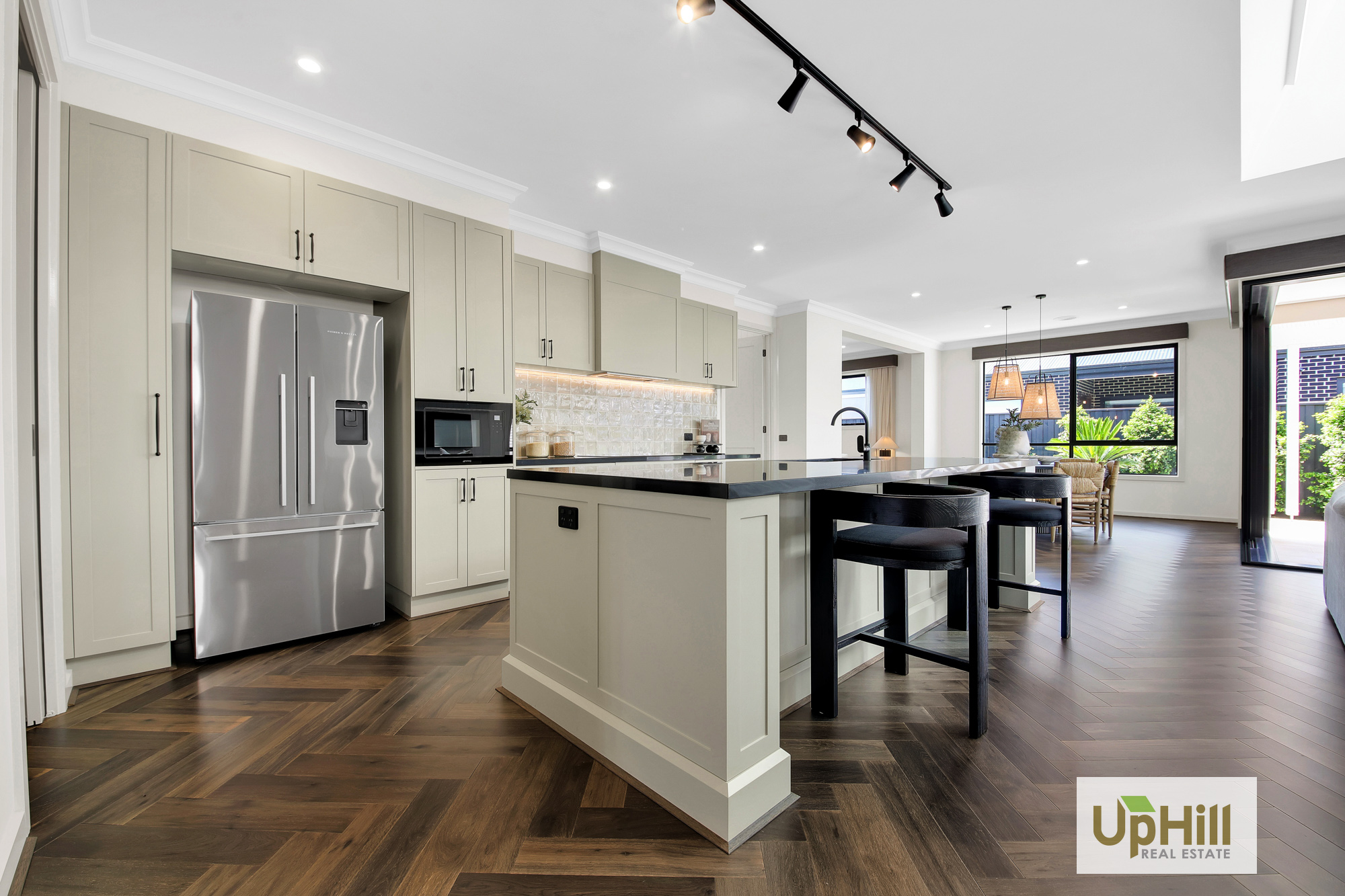 The beautifully designed kitchen has everything you need to whip up a hearty family meal or entertain and features a expansive island bench with stone benchtops which is sure to impress as well as stainless-steel appliances, and ample storage throughout including the spacious walk-in butler’s pantry as well as neighbouring laundry with dual access and additional linen closet are positioned perfectly to creating additional storage throughout.