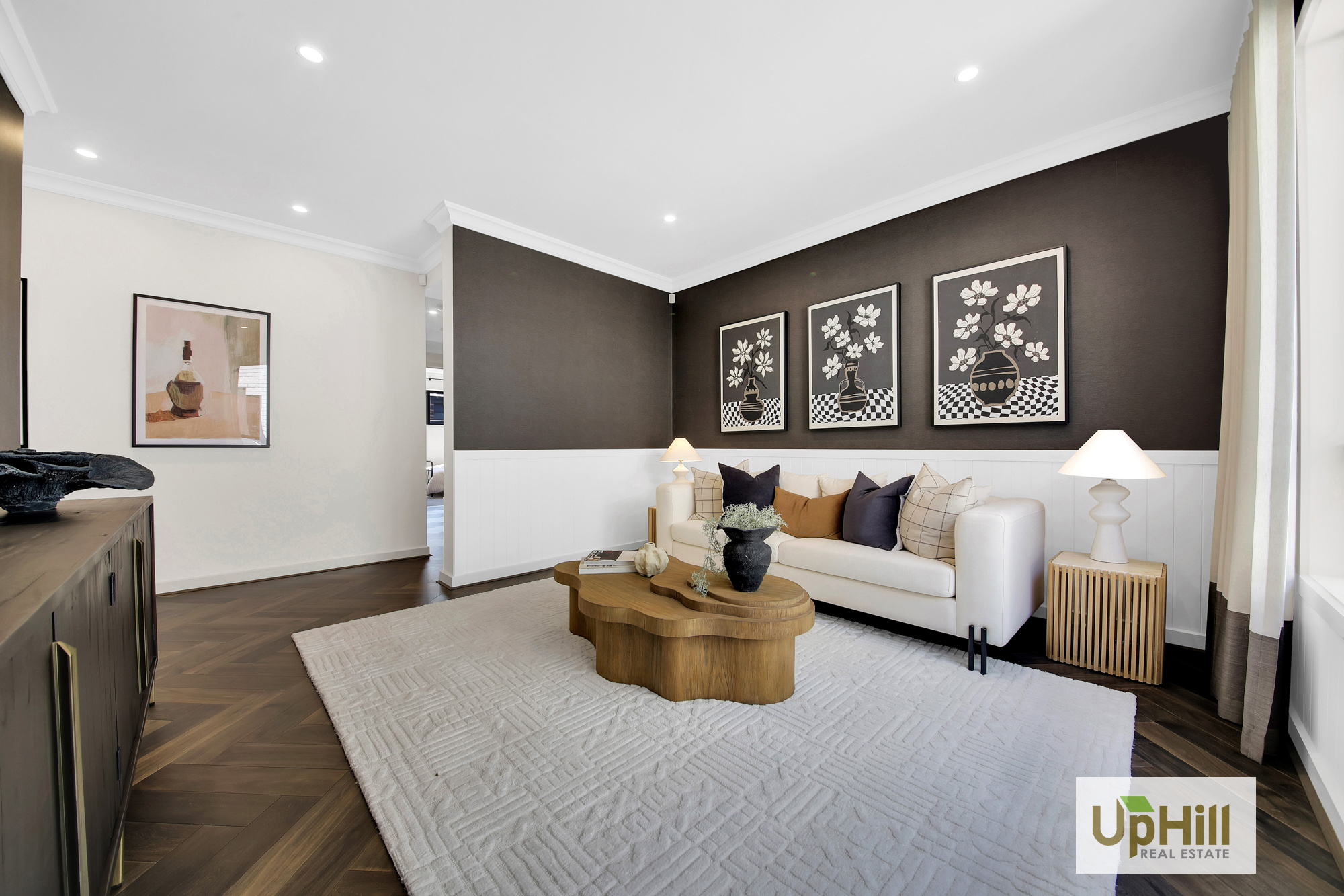 Continuing down, the property flows past dual access to the 2-car garage, additional lounge/guest bedroom and the secondary hallway with access to the remaining bedrooms with wardrobes, and access to the spacious main bathroom with dual vanity and dual access, positioned perfectly neighbouring the separate powder room.